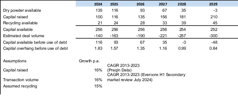 - The secondary funds’ liquidity needs as part of the managers’ own respective capital overhang;